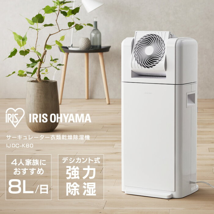 [400円OFFクーポン][最安値に挑戦☆]除湿機 デシカント式 アイリスオーヤマ サーキュレーター付き 8L 衣類乾燥除湿機 静音 タイマー付き 首振り 部屋干し 除湿器 大容量 上下角度調節 扇風機 換気 浴室 送風 湿気対策 カビ対策 梅雨 結露対策 パワフル ホワイト IJDC-K80
